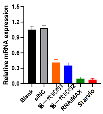圖c. 不同siRNA轉(zhuǎn)染試劑轉(zhuǎn)染siLamin A/C到Hela細(xì)胞后,24h,Lamin A/C基因mRNA表達(dá)水平的比較。