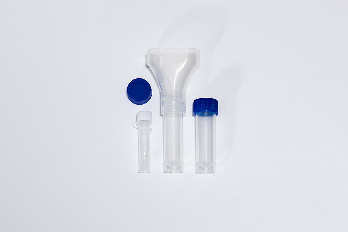 本產(chǎn)品由收集漏斗、收集管和收集管帽組成。其中在漏斗蓋內(nèi)有塑封膜封存的細(xì)胞保存液,該液體與唾液混合后可長時間在室溫下保存,唾液樣本核酸不受破壞。底座部分為唾液收集管,儲存2毫升唾液。收集完畢后按下漏斗蓋,便可使唾液與保存液混合。再將收集管的小蓋子蓋上,旋緊搖勻即可。