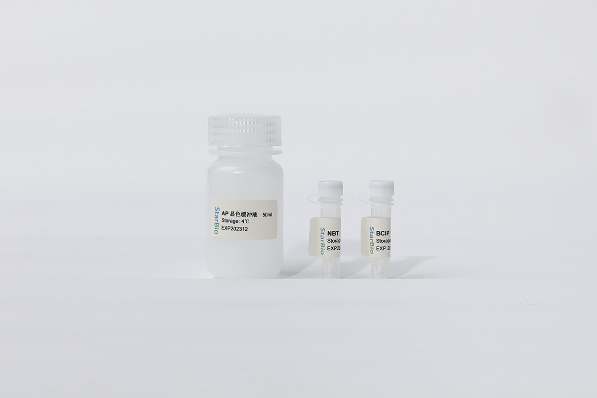 BCIP/NBT是堿性磷酸酶的常用底物,在堿性磷酸酶的催化下,BCIP會(huì)被水解產(chǎn)生強(qiáng)反應(yīng)性的產(chǎn)物,該產(chǎn)物和NBT發(fā)生反應(yīng),形成不溶性的深藍(lán)色和藍(lán)紫色化合物。星啟百代BCIP/NBT顯色試劑盒經(jīng)反復(fù)優(yōu)化,具有超高的堿性磷酸酶反應(yīng)靈敏度,可廣泛應(yīng)用于DNA印跡雜交、RNA印跡雜交、蛋白印跡檢測(cè)、原位雜交以及免疫組織化學(xué)顯色等。