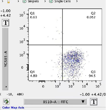 圖1.清華大學(xué)研究者使用Starvio Huvec siRNA轉(zhuǎn)染試劑轉(zhuǎn)染siRNA至Huvec細(xì)胞中,使用流式細(xì)胞儀檢測(cè)轉(zhuǎn)染效率達(dá)90%以上。